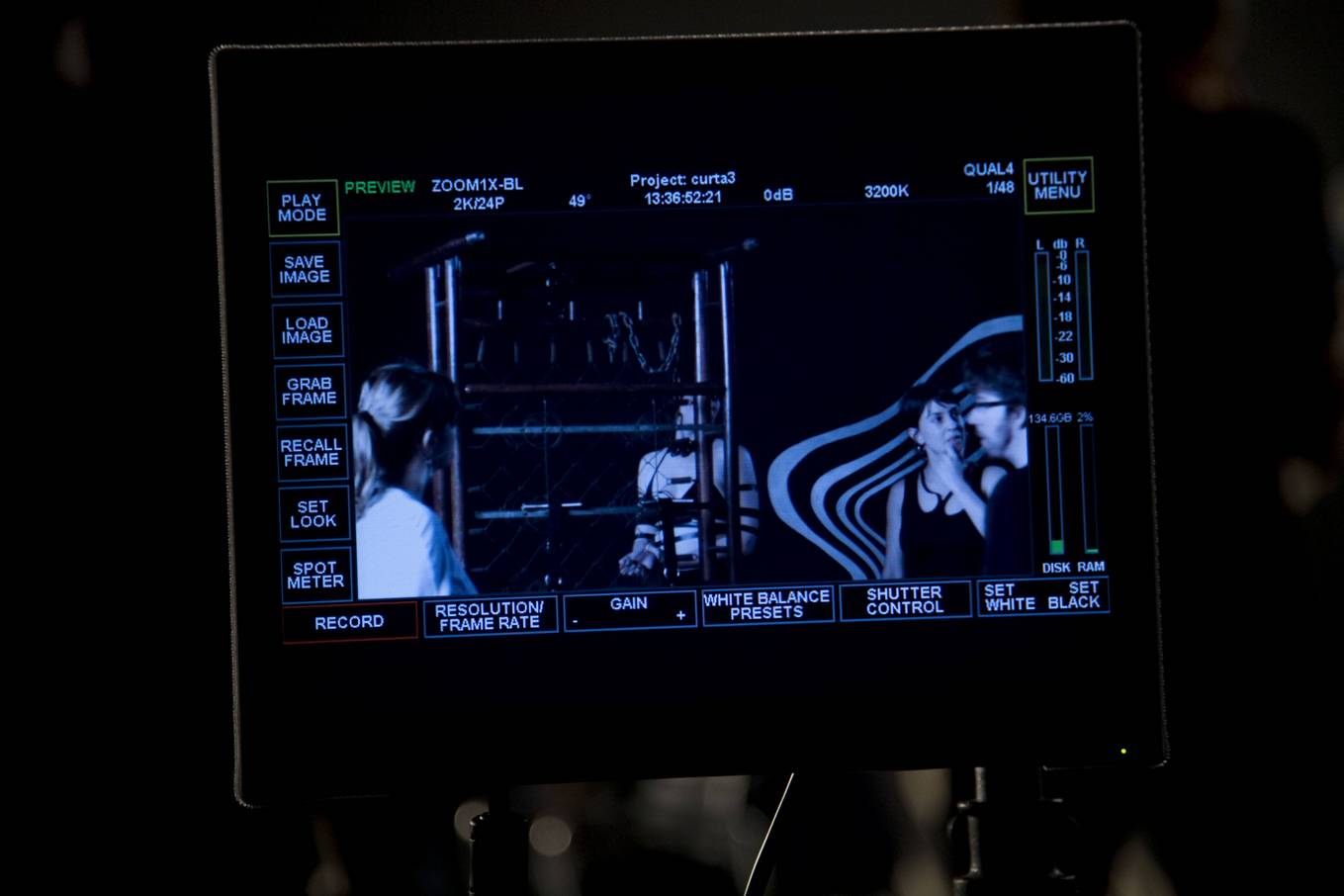 A partir de várias conversas, leituras e referências cinematográficas, a Simone escreveu um roteiro inicial que englobava filmes e cena, com o qual demos início à etapa de execução. Convidamos a Marcela Lordy para dirigir os filmes e fomos durante algum tempo decupando e decantando particularmente os roteiros dos curtas, para que eles fossem filmados logo, pois sabíamos que só depois de termos feito os filmes poderíamos construir a dramaturgia da cena e poderia se dar de fato a interlocução dos veículos.