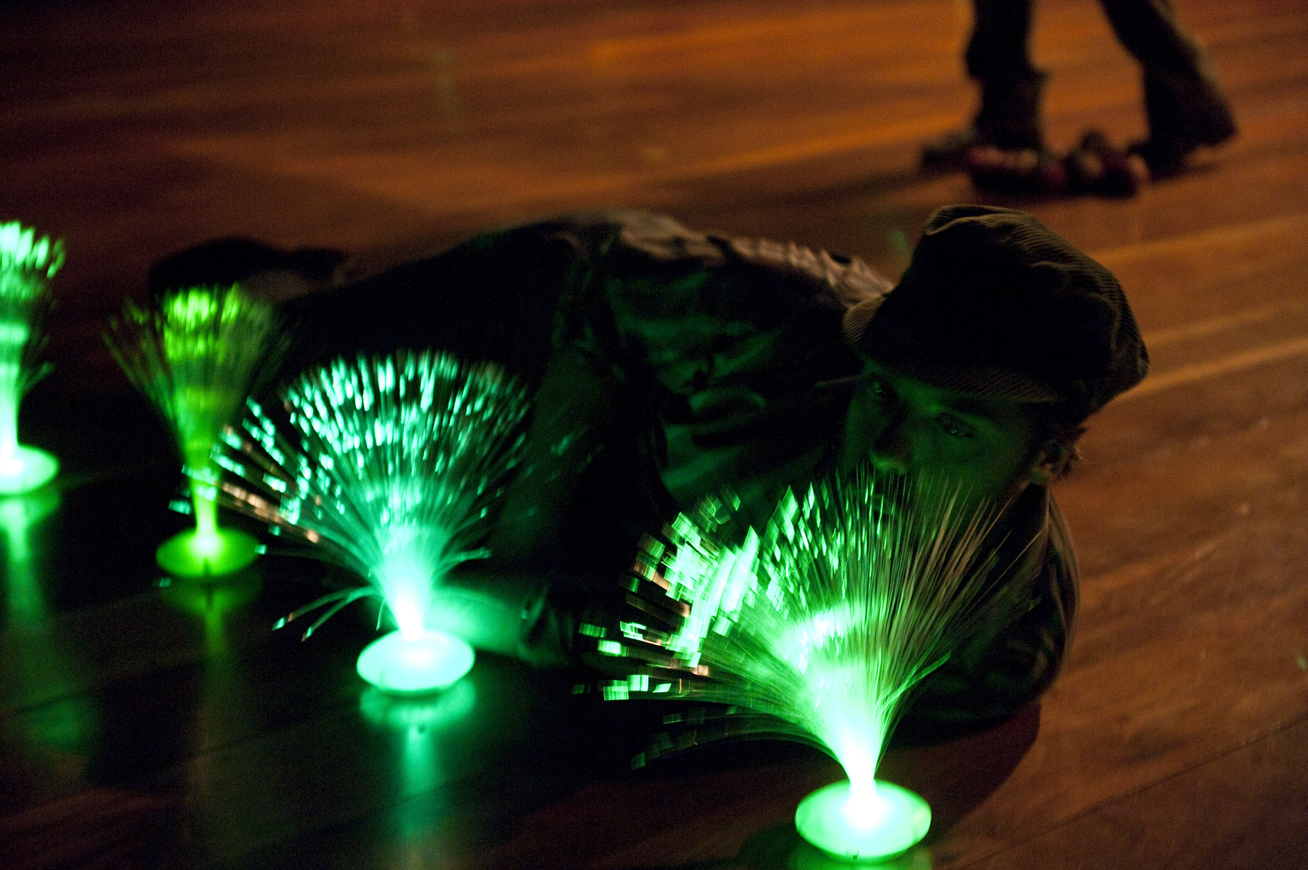 É como se o espetáculo se estruturasse feito um suporte para uma tela em branco na qual pintamos imagens através das palavras e dos silêncios. Seu caráter despojado espraia-se em signos elementares como as mesas e cadeiras rústicas, a fita crepe, as velas, as maçãs, os casacos, o assobio do vento e o coaxar noturno. Pouco importa a mimese; reforça-se a composição alegórica, como na passagem em que abajures de fibra óptica ocupam vários pontos do palco e suas luzinhas multicolores sugerem o “jardim” que Stanislavski esboçara como cenário para um drama de Tolstói, Tsar Fiódor, a primeira montagem do TAM.