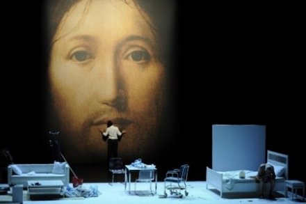 Castellucci questiona os limites da teatralidade ao trabalhar na fronteira entre o que é real e o que é ficção. Tendo como pano de fundo um ícone sagrado, como um grande retrato do rosto de Jesus, ele questiona de que forma aquela realidade pode entrar na ficção. A imagem de Cristo também representa uma metáfora da condição humana, como um espelho diante de todos nós olhando nossas ações.