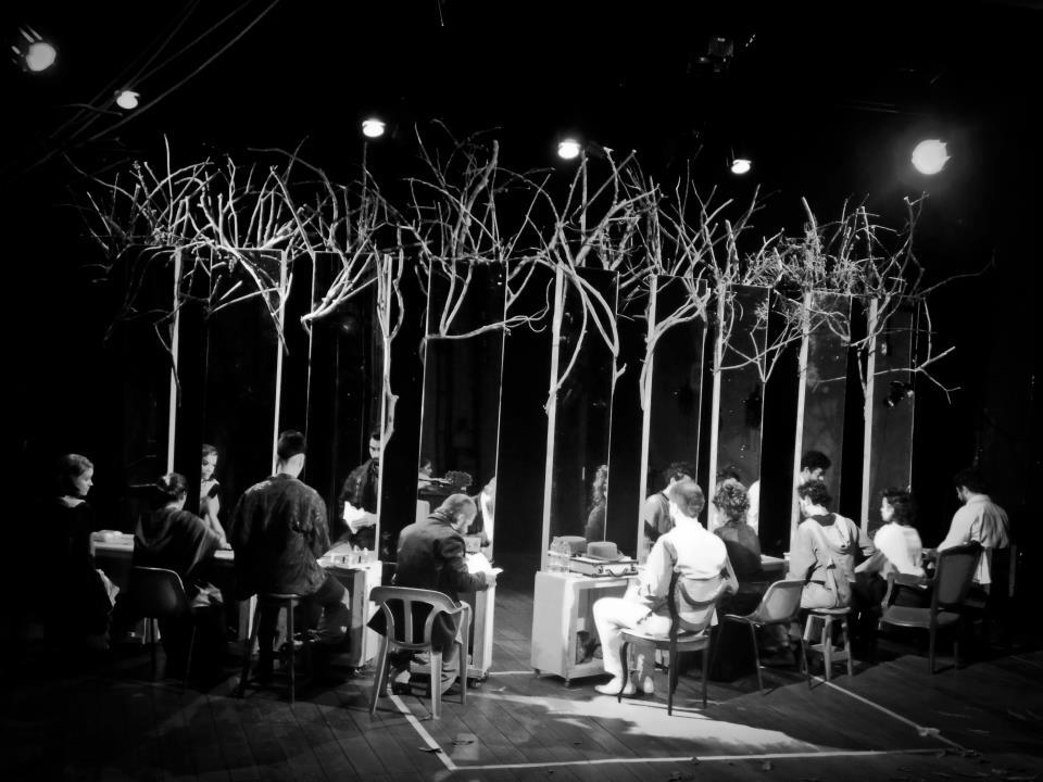 É difícil estar de fora sem precisar invadir o texto como o ator deve fazer. Ter essa visão sobre o como fazer, ter o procedimento claro para que a proposta seja executada como idealizada é mais fácil do que somente pensar que você é o fazedor dessa dinâmica, no caso do atuante. Partimos da leitura do texto e fomos designando os atores para os personagens, mais pelo entendimento e empatia deles com os papeis e menos pela semelhança física. Daí em diante, era apenas a divisão do texto em unidades, o que facilitaria a forma de enunciação e nos momentos de transição entre os atos. Desde o início mantivemos encontros com 3 horas de duração, no mínimo, e que pudéssemos trabalhar corrido as cenas e fazer um trabalho quase personalizado – dependendo do ator e da cena. Acredito que o nosso tipo de processo não priorizava uma montagem tradicional quando se fala de montar estritamente o que está ali no texto ou com as referências do autor e da época, prezamos pela possibilidade de sermos tocados com o que está por trás da dramaturgia, com os silêncios detentores de significados, das entradas e saídas de personagens que dizem muito mais do que estar ou não presente na cena.