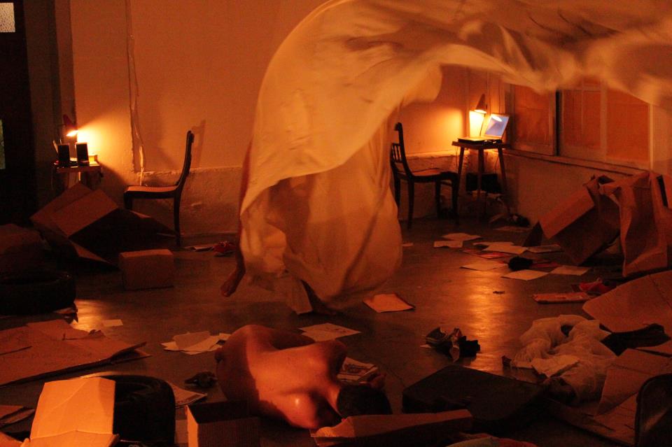 Logo em seguida a esse momento inicial, os atuantes desfazem os papéis determinados e entram em diálogo com o público convidando quem quiser “deixar” algum objeto, se desfazer de algo. Eles servem bebidas, oferecem cigarros e chocolates atentando para o fato de que o abandono pode ter vários sabores, enquanto vão pouco a pouco desfilando narrativas pessoais relacionadas a objetos dos quais se desfazem pelos cantos. A cena tem graça e leveza e, como sabemos, é um modo de criar espaços em que o público possa se reconhecer ativo na realização do trabalho de arte. No caso, o público se faz cúmplice trazendo a memória suas próprias lembranças e objetos de abandono. Porém, mesmo tal intenção acaba perdendo algo de sua potência pelo modo pouco preciso, um pouco rápido demais, que compromete a ideia de um tempo estendido e, às vezes, tende para o gratuito. De algum modo, os atuantes parecem temer eles mesmos a abertura que empregam na cena e criam barreiras sutis para uma situação de copertencimento mais plena.